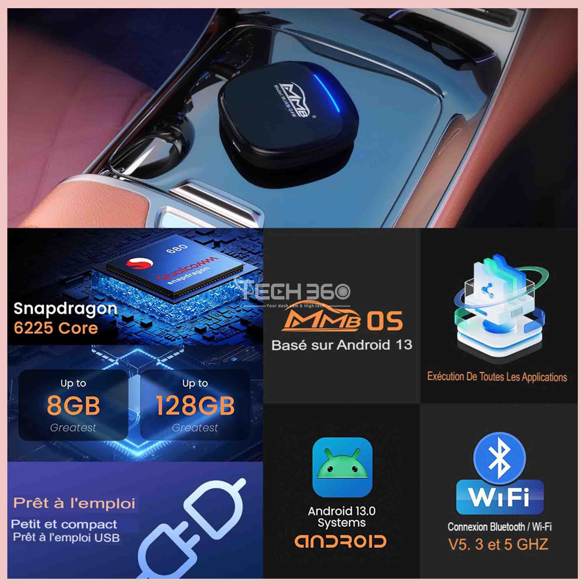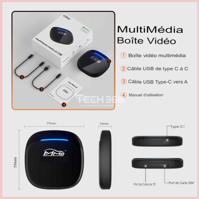 Dites adieu aux tableaux de bord encombrés avec l'adaptateur sans fil MMB CarPlay. Cet appareil unique vous offre la commodité de trois fonctionnalités essentielles en un seul dispositif : CarPlay sans fil, Android Auto sans fil et un système Android polyvalent. Profitez d'une lecture musicale fluide, d'une gestion des appels sans effort et d'une navigation facil, tout cela à partir d'un seul appareil multifonctionnel. Simplifiez votre voyage et adoptez une expérience de conduite plus organisée et connectée.