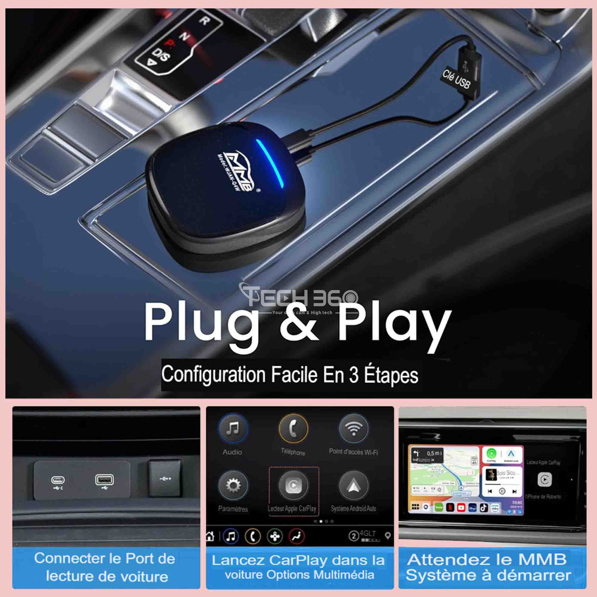 Votre voiture doit être équipée de CarPlay filaire d'origine. Si vous n'êtes pas sûr, veuillez envoyer le modèle de votre voiture au support TECH360.