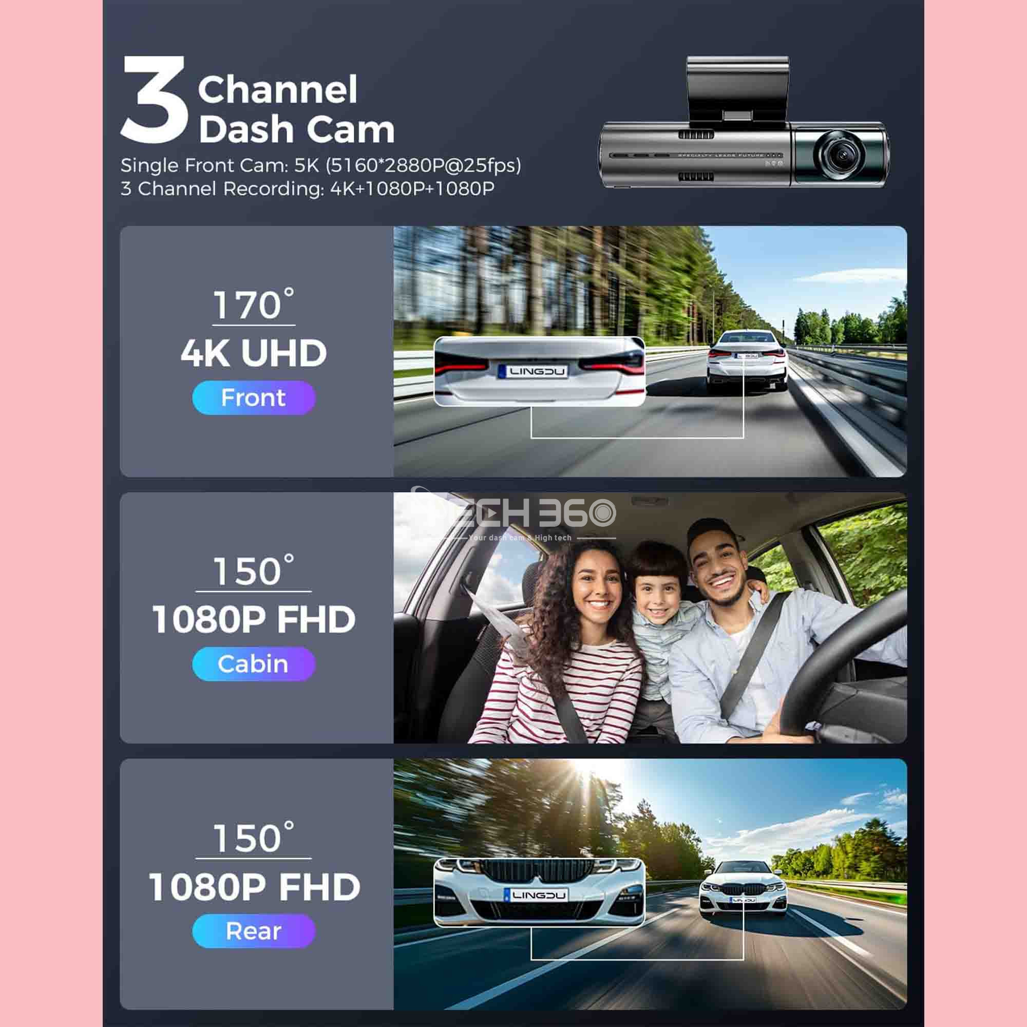 Cette caméra de tableau de bord à 3 canaux offre une flexibilité exceptionnelle en matière de surveillance et de qualité d'enregistrement, répondant à divers besoins des conducteurs.