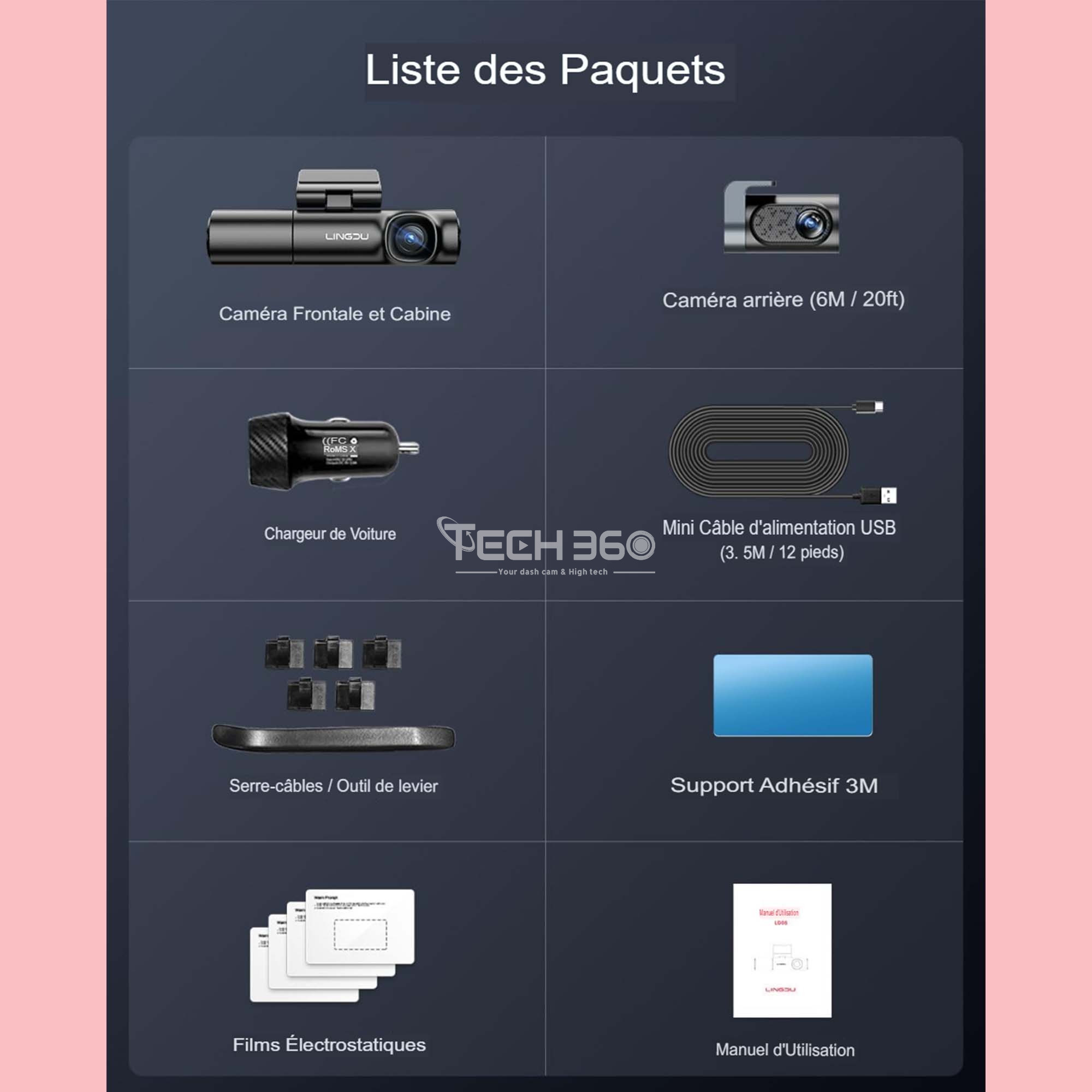 NB : Nous recommandons d'acheter aussi le "HARDWIRE KIT" de votre caméra de tableau de bord pour faire fonctionner le mode parking.