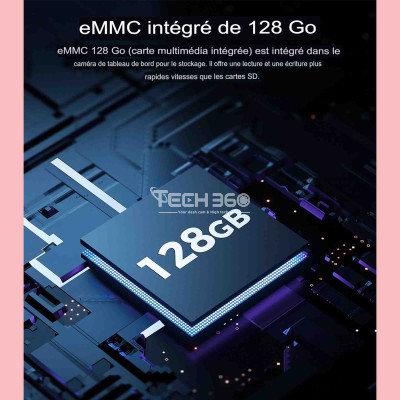 La caméra de voiture à 3 canaux LD08 est équipée d'une carte eMMC de 128 Go intégrée, ce qui constitue un atout majeur en termes de performances et de commodité. Contrairement aux cartes SD traditionnelles, la technologie eMMC (Embedded Multi Media Card) utilise un stockage non volatile intégré directement dans l'appareil. Cela signifie que la carte est solidement fixée dans la caméra, réduisant ainsi les risques de perte ou de mauvais fonctionnement liés à l'insertion ou au retrait fréquent des cartes mémoire.