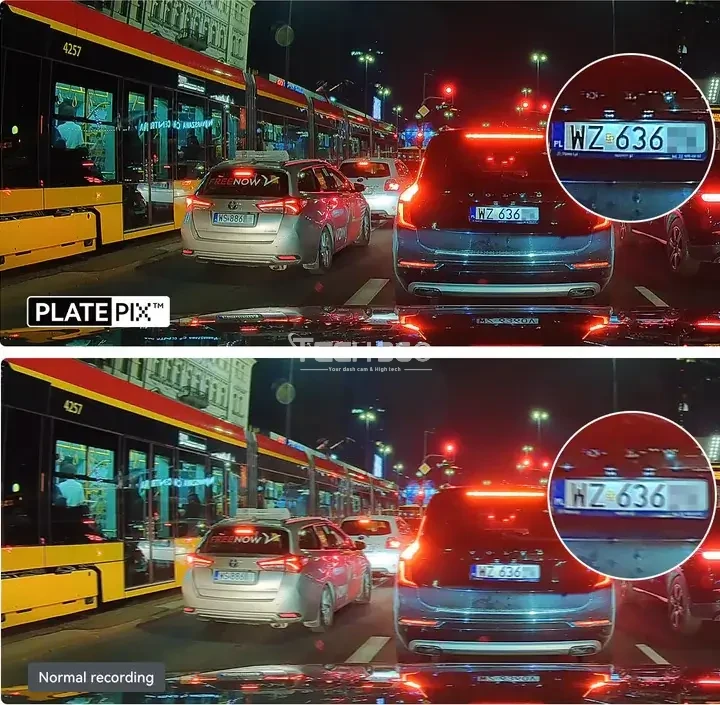 Le N4 Pro enregistre simultanément l'avant, l'habitacle et l'arrière en 4K+1080P+1080P à 30 FPS, offrant une qualité d'image exceptionnelle en capturant chaque détail, avec beaucoup moins de bruit et de flou de mouvement, de jour comme de nuit.