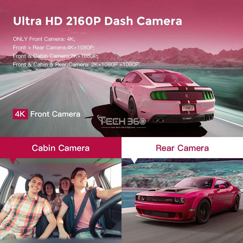 Expérimentez avec votre dashcam AZDOME M550 une qualité d'enregistrement exceptionnelle avec des vidéos 4K UHD à 3840x2160p, la caméra frontale atteint une résolution vidéo allant jusqu'à 4K, tandis que la configuration avec les caméras avant et arrière offre des résolutions de 4K et 1080P respectivement. De plus, la combinaison de la caméra avant et de la caméra de cabine enregistre à des résolutions de 2K et 1080P, et en mode à trois voies, les résolutions sont de 2K, 1080P et 1080P.