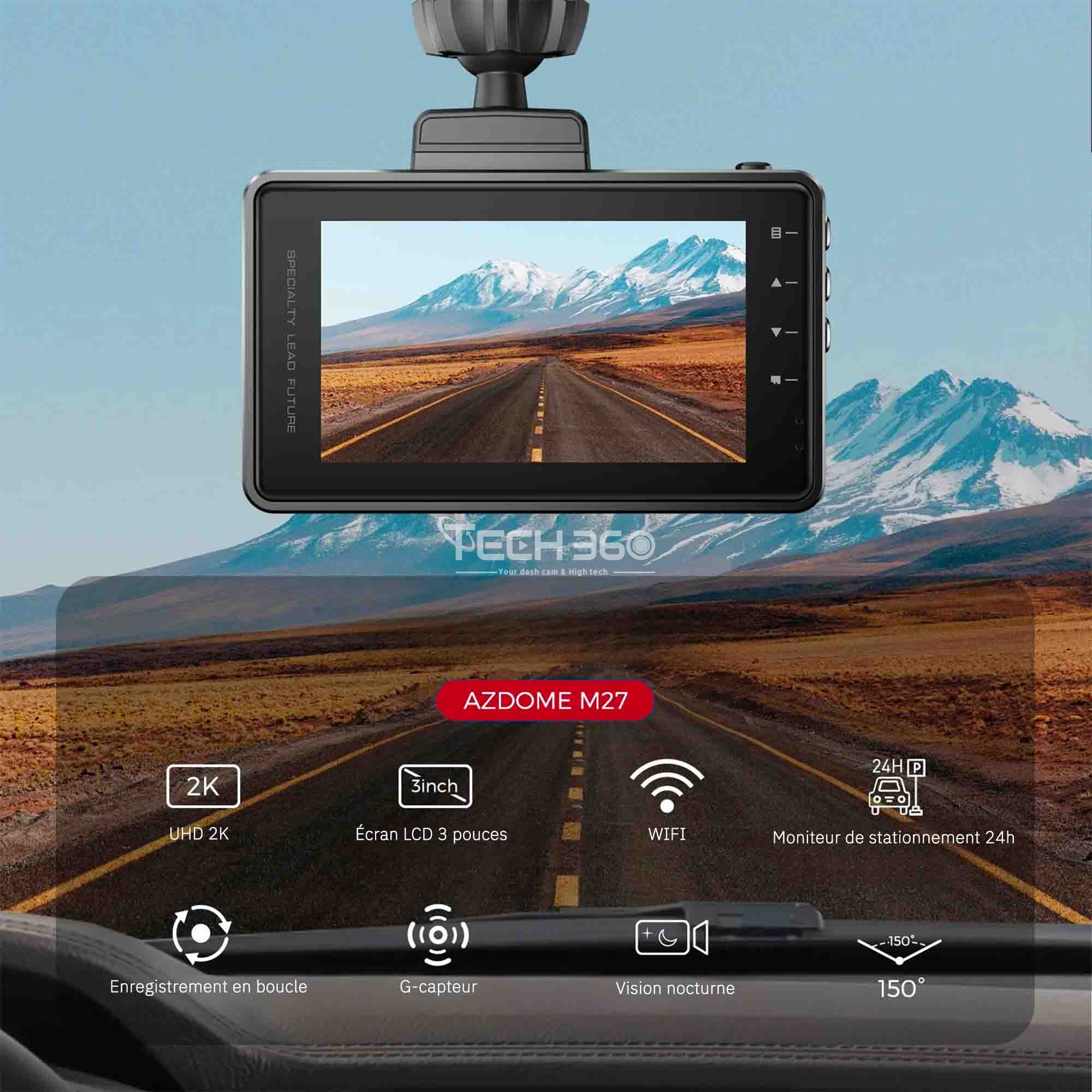 La caméra de tableau de bord AZDOME M27 propose une résolution de 2K (1440P). En enregistrant des vidéos à 1440P/30FPS, elle capture les scènes en mouvement rapide et génère des séquences haute résolution à grande vitesse. Cela permet de révéler des détails d'image plus délicats et d'afficher plus facilement les informations visuelles.