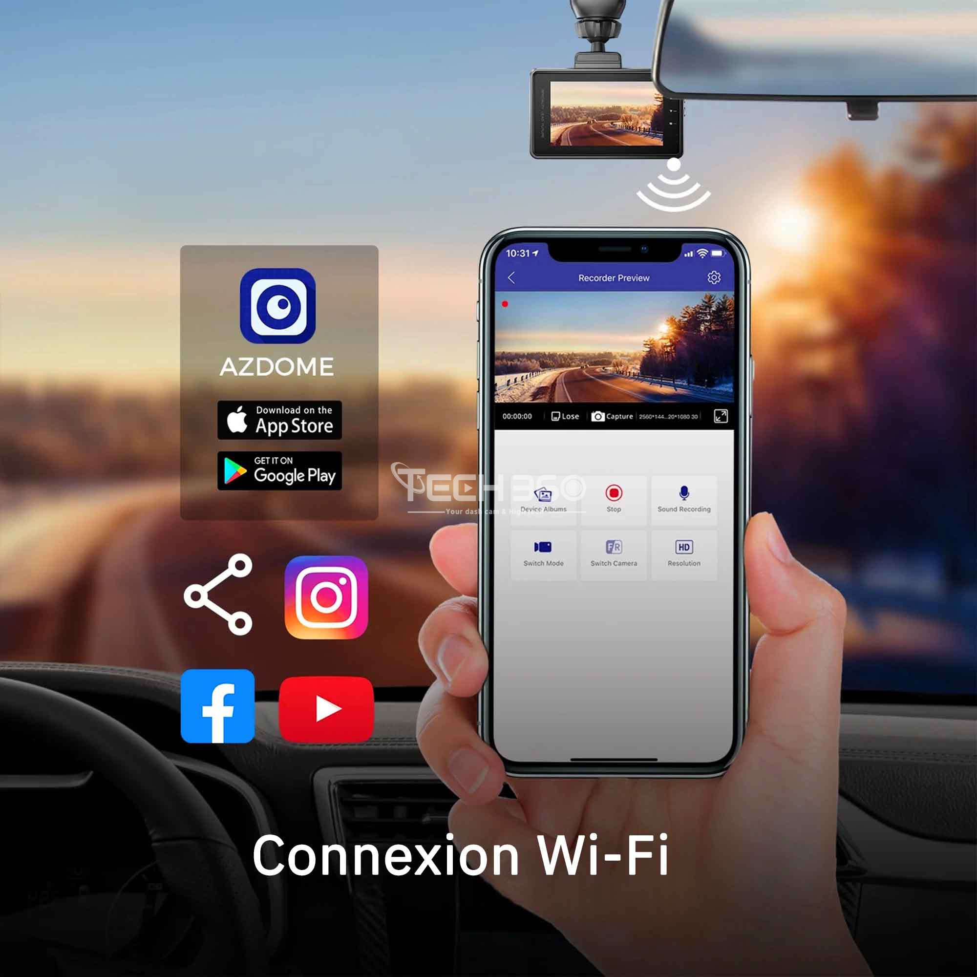 Vous avez la possibilité de visionner ou télécharger les vidéos directement sur votre smartphone via l'application WiFi de la dashcam AZDOME M27, éliminant ainsi la nécessité d'extraire la carte TF pour une vérification sur un ordinateur.