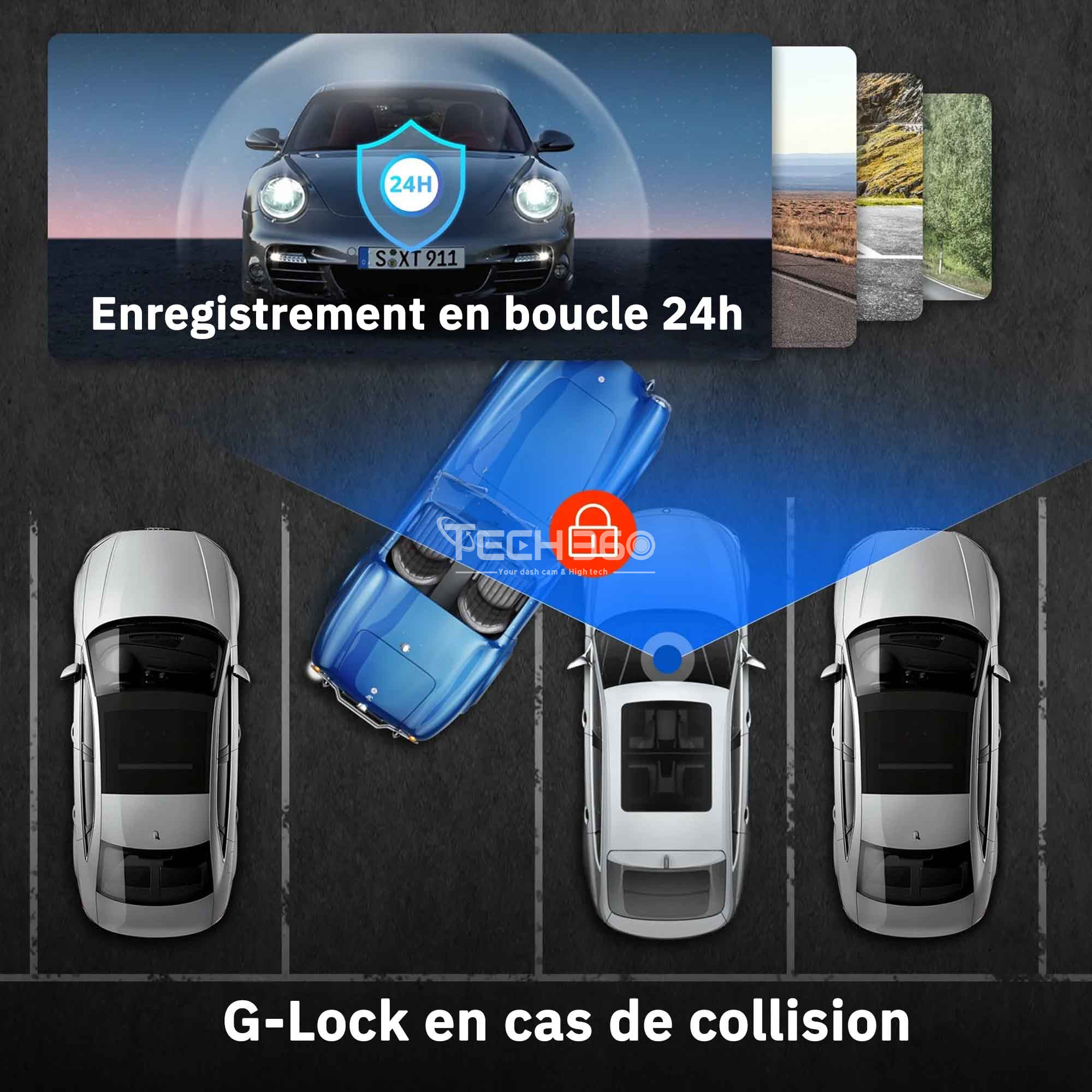 En mode stationnement, la cam car enregistrera automatiquement chaque fois qu'elle détecte une vibration de la voiture, assurant ainsi une protection continue de vos droits légaux.