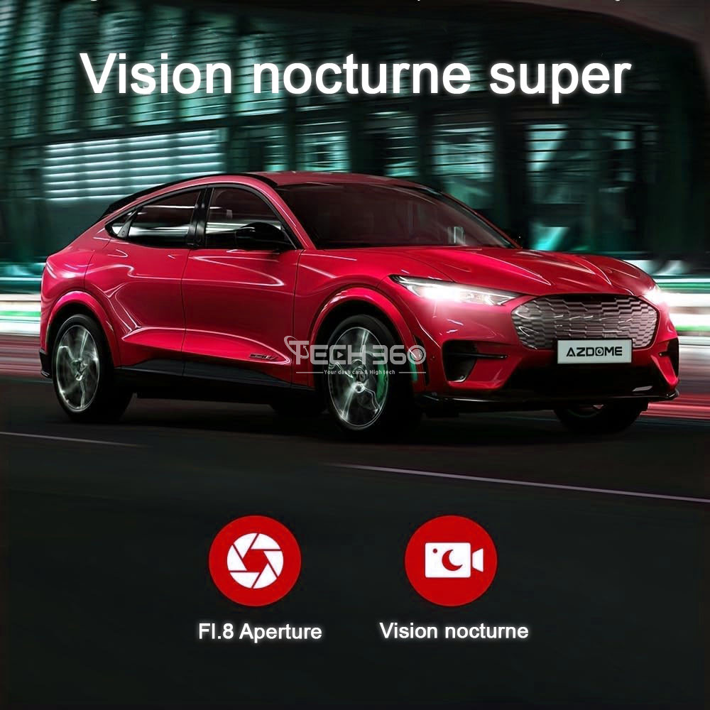 La caméra de voiture AZDOME M550 Pro dont l'ouverture large à F/1.8 permet de capturer des images de qualité supérieure, que ce soit en plein jour ou pendant la nuit. La technologie de distance focale exclusive, optimisée par l'objectif grand-angle à 6 lentilles, facilite la capture de petits détails tels que les plaques d'immatriculation avec une précision accrue, même dans des conditions de faible luminosité.
