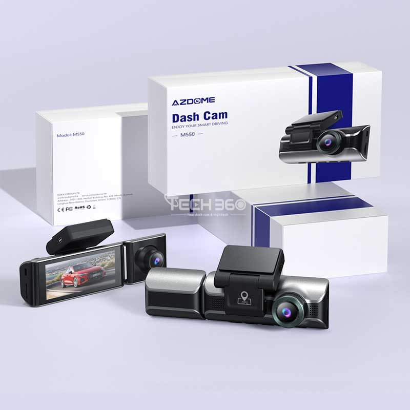 La dashcam AZDOME M550 Pro est une version améliorée du dash cam M550. il a mis à niveau son WiFi de 2.4GHz à 5.8GHz, offrant une vitesse plus stable et plus rapide lors de la connexion à l'application du téléphone mobile, avec une rénovation de la caméra arriére aussi.