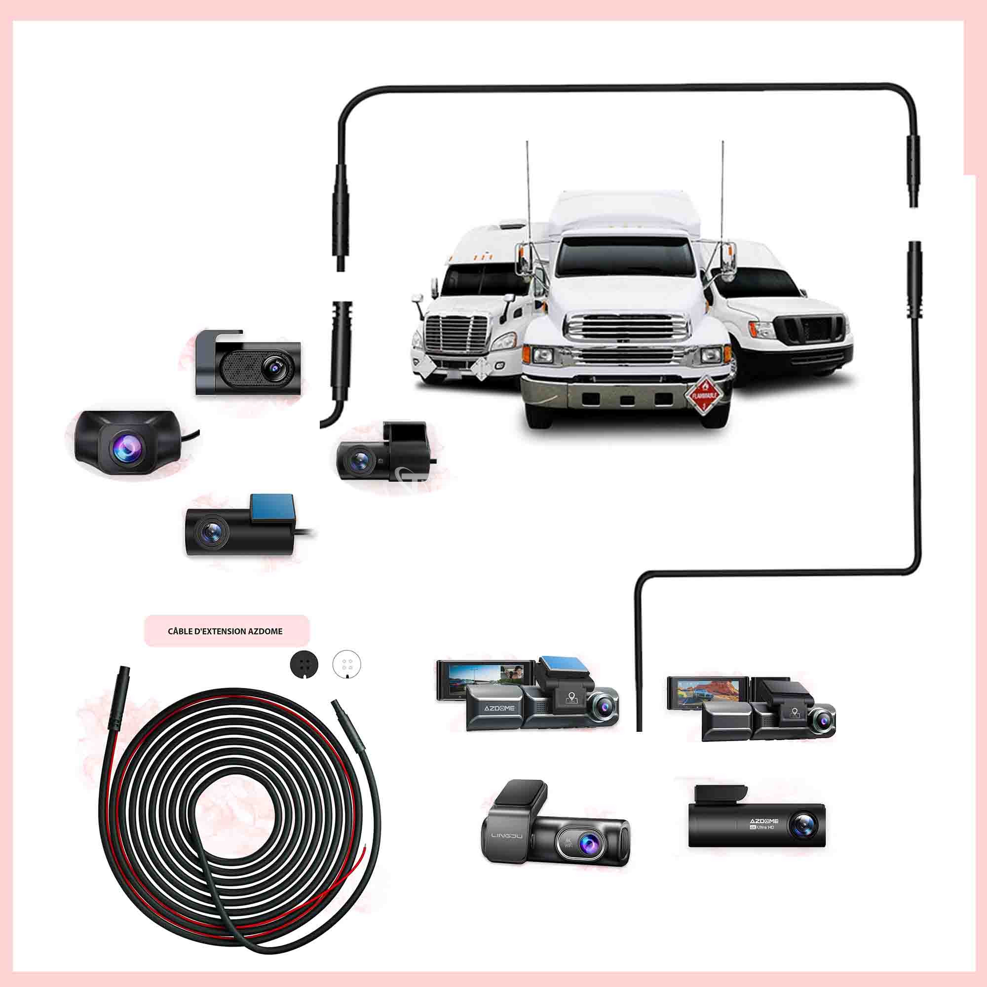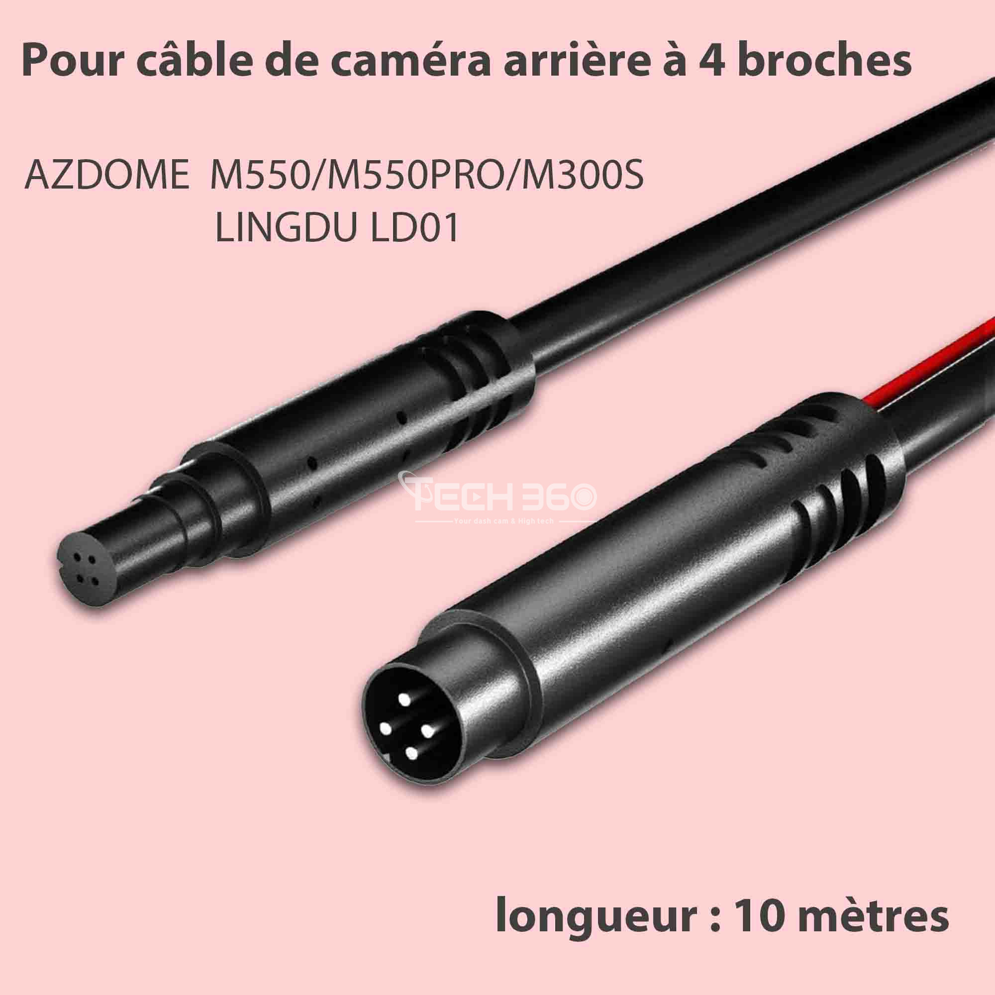 ● Le câble d'extension 4-PIN de 10 mètres est conçu spécifiquement pour les caméras de recul des rétroviseurs des modèles AZDOME M550 PRO, M500, M300S et LINGDU LD01. Il convient aux camping-cars et camions fonctionnant en 12V et 24V. Avec une conception originale, l'installation est facile en plug-and-play, compatible avec les caméras de recul et les dashcams.