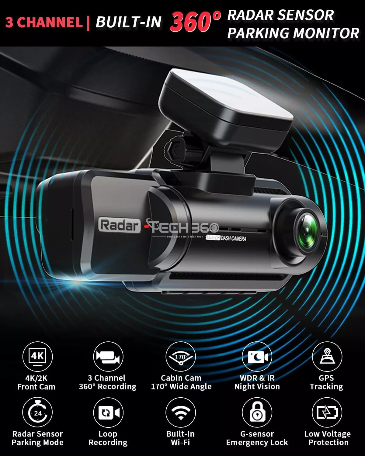 ● Caméra Dashcam 4K+1080P Avant & Arrière/Intérieur