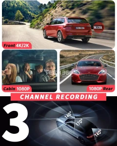 Lorsque la caméra de voiture est réglée en mode double caméra avant et arrière/intérieur, elle fournit des images HD grâce à la caméra avant 4K et la caméra arrière/intérieure 1080P. La dashcam propose plusieurs modes d'enregistrement (1-CH/2-CH/3-CH) parmi lesquels vous pouvez choisir.