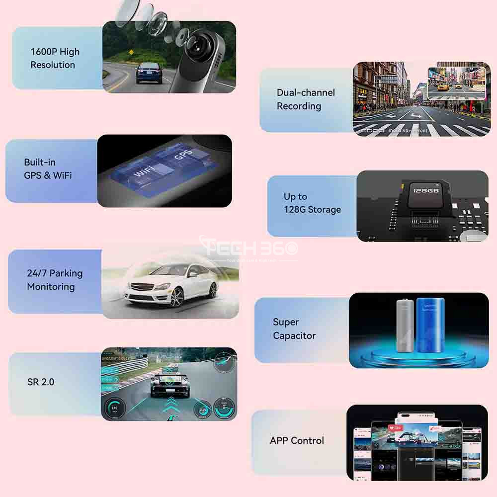Vision nocturne, GPS intégré, Enregistrement en boucle, Time lapse et détection de collision