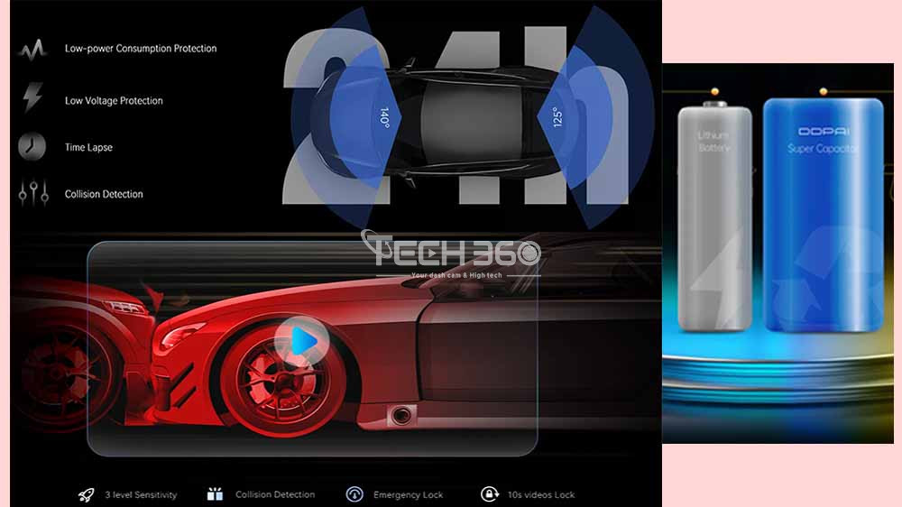 La dashcam Mola N3 Pro continue d'enregistrer lorsque la voiture est garée et le moteur est éteint. Soyez une caméra 360 ° de surveillance 24/7 et protégez votre voiture toute la journée. Protection contre la consommation d'énergie faible, protection contre les basses tensions, Time Lapse, détection de collision. *Il est nécessaire d'acheter un kit de câblage externe pour la surveillance de stationnement 24h sur 24h. Soyez un témoin fiable avec le capteur G intégré. Le capteur G à sensibilité variable détecte automatiquement les secousses soudaines ou les collisions lors de la conduite ou du stationnement, et enregistre immédiatement les séquences pertinentes en les verrouillant dans un fichier d'événement. Alimenté par un supercondensateur avec une performance et une fiabilité élevée. Alimentée par un supercondensateur, la dashcam peut enregistrer en toute sécurité même dans des conditions météorologiques extrêmes, de -4°F à 158°F. Contrairement à une dashcam lithium-ion, le supercondensateur peut éviter les risques de surchauffe et d'explosion, prolonger la durée de vie et prendre en charge l'enregistrement des 3 à 4 dernières secondes même lorsque la dashcam est éteinte.