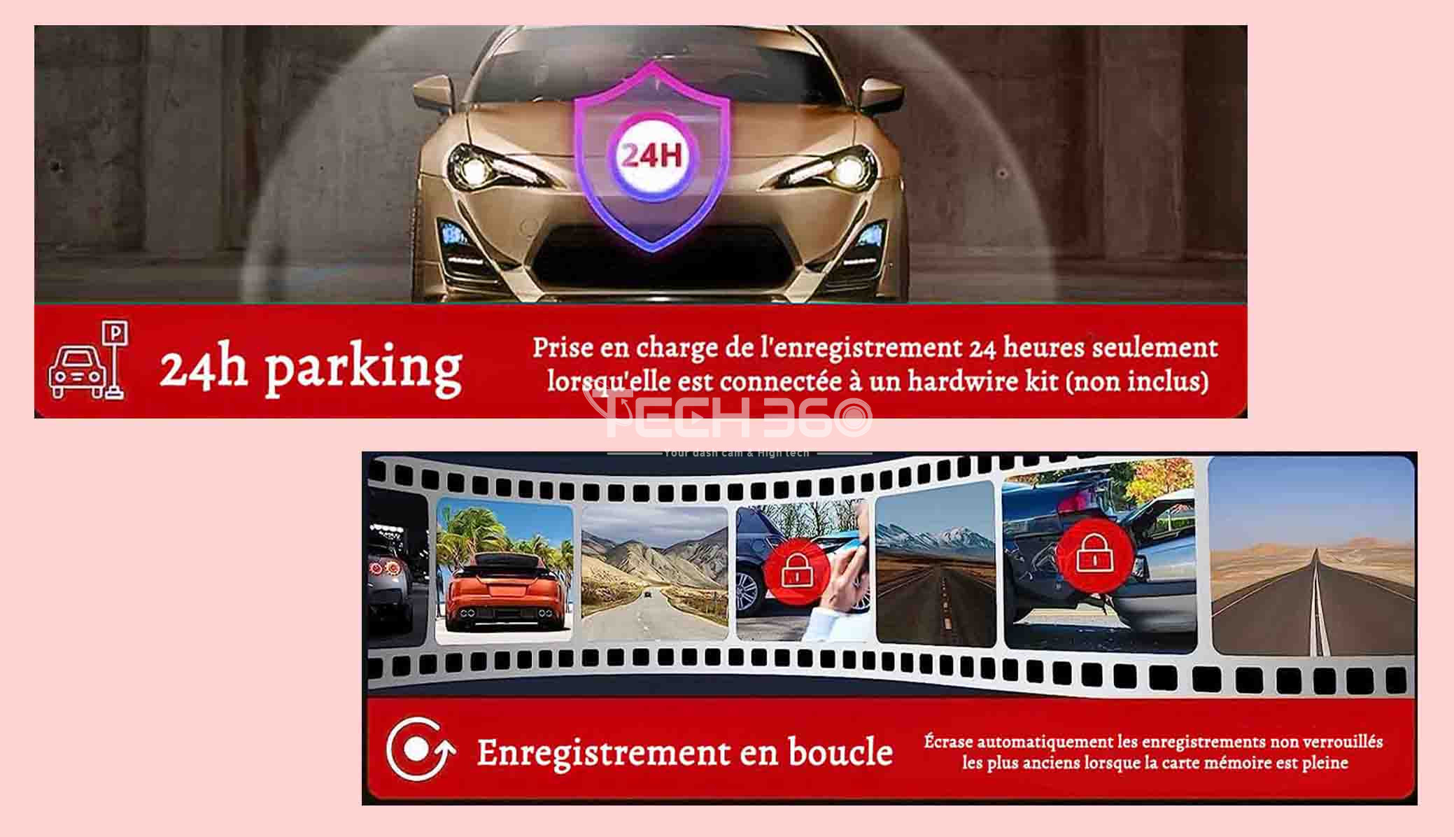 La fonction de surveillance de stationnement de la caméra de surveillance pour voiture LINGDU  D500 assure une surveillance 24 heures sur 24 de votre véhicule. La cam car enregistre automatiquement et verrouille la vidéo en cas de collision pour faciliter les réclamations d'assurance. Trois modes de stationnement sont disponibles : détection de collision, accéléré et enregistrement normal, sélectionnables avec le kit de câblage dur Type-C 3-Lead. Cela offre une protection de sécurité complète pour votre véhicule, vous procurant une tranquillité d'esprit lorsque vous êtes garé.