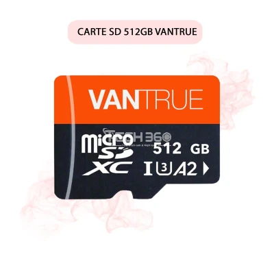 Elle prend en charge jusqu'à 512 Go de mémoire externe (vendue séparément ; carte SD Vantrue recommandée, ASIN : B09SNRFSS3), garantissant un espace de stockage suffisant pour tous vos trajets.