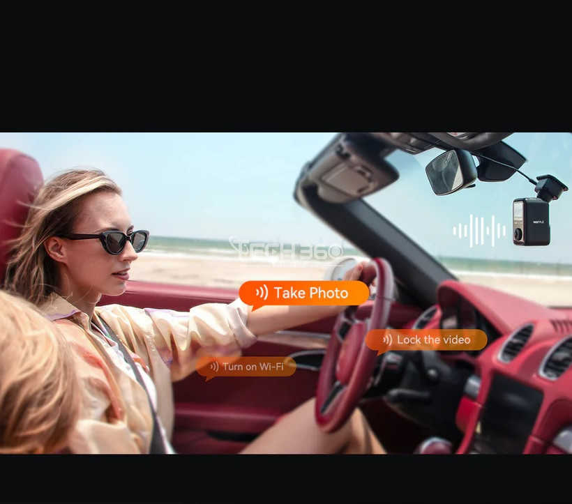 La dashcam vous permet de prendre des photos, de basculer l'audio, d'activer ou de désactiver le Wi-Fi et de verrouiller les vidéos en utilisant des commandes vocales dans plusieurs langues (anglais, japonais, russe, chinois et français). Cela garantit une utilisation mains libres et vous aide à vous concentrer sur la conduite en toute sécurité.